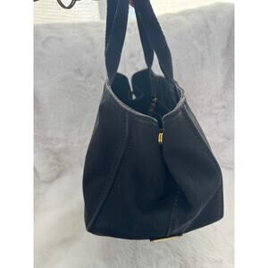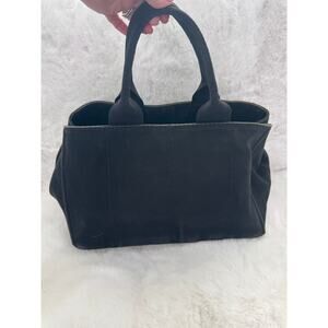 This timeless Prada Milano canvas tote embodies understated luxury with its sleek black silhouette and signature white embroidered logo. Crafted from durable canvas with structured sides and gold-tone accents, this piece offers both elegance and everyday functionality. Its roomy interior makes it perfect for daily use, travel, or as a stylish carryall.