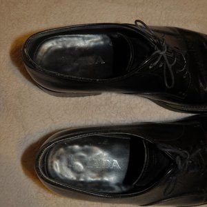 Prada Cap Toe Pebble Textured Black Leather Oxfords Dress Shoes US Size 9