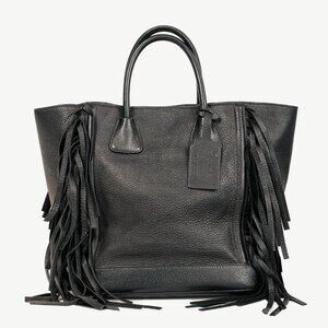 Prada Cervo Black Fringe Deerskin Leather Tote