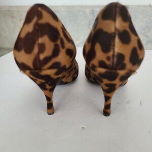 These Prada Cheetah Print pony Hair Leather Heels are a stylish and luxurious addition to any woman's wardrobe. Made with high-quality leather and featuring a unique cheetah print design, these almond toe heels are crafted in Italy. The mid-height heel provides both comfort and elegance, making them perfect for holidays! The leather lining and insole ensure a premium feel while the leather outsole offers durability and stability. These PRADA heels combine fashion and quality for a chic and sophisticated look.
