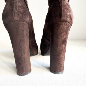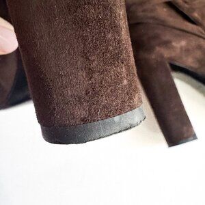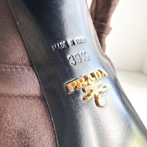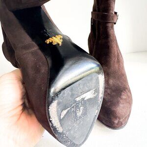 Prada Chocolate Brown Suede Classic Stacked Heel Booties 39.5