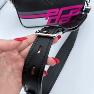 This NWT full inclusion Prada bag from the 2010s is so fun and give punk Nascar vibes. Pristine condition and someone definitely needs this as a part of their collection! The thick black adjustable strap makes for an extremely comfortable crossbody.