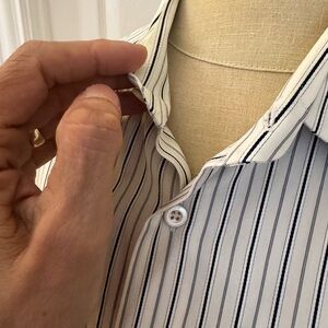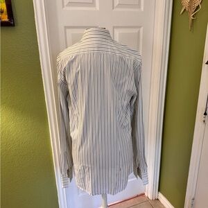 Elevate your wardrobe with this classic striped men's shirt. Perfect for both casual and formal occasions. It does not have buttons on the side of the arms- not sure if the shirt comes like that or if they are missing. Fairly used and in great condition! Open to offers