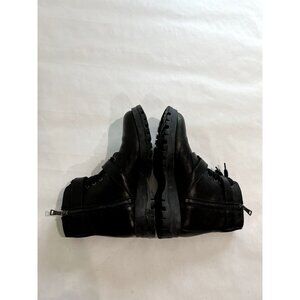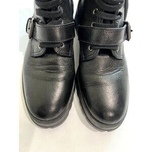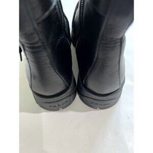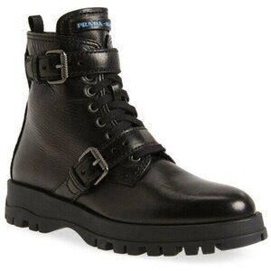 Prada Combat Leather Buckle Boots in Black