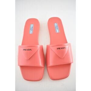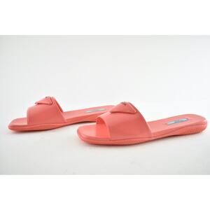 Prada Corallo Red Rubber Leather Triangle Logo Slide Sandal Flip Flop Flat 39