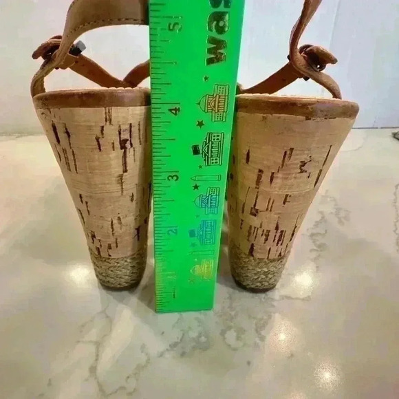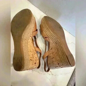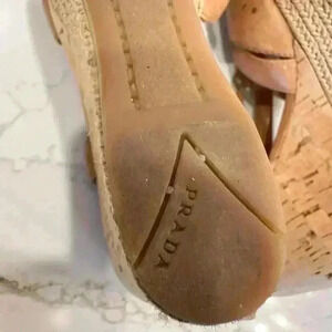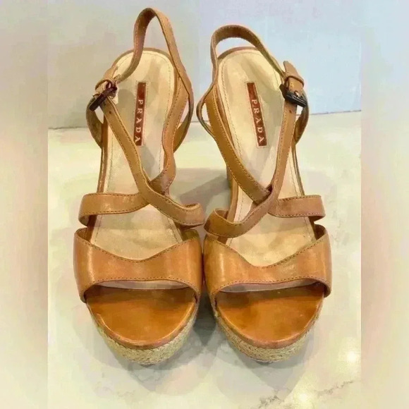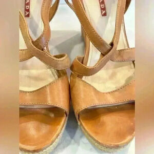 Prada Cork Wedge Strappy Tan Leather Sandals (Sz 37.5)