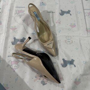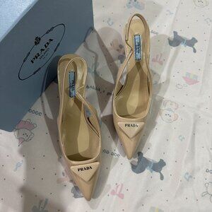 Prada Cream Pointed-Toe Pumps