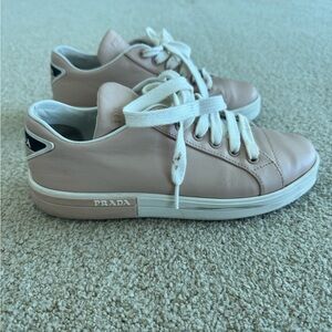 PRADA Vitello Soft Logo 4 Beige Leather Low top Casual Sneakers Women's sz 36