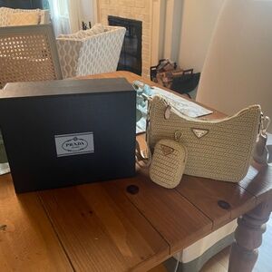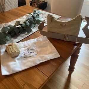 Only used once! Prada reedition 2005 crochet cross body bag with box and cloth case. Also has chain strap witj cloth strap.