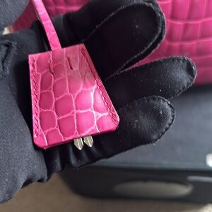 Prada Crocodile Embossed Pink Bauletto Bag 2000s