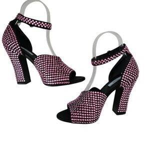 Prada Pink Crystal Embellished Heel Sandals – Size 39.5 / US 9.5