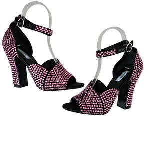 Prada Crystal Embellished Pink Ankle Strap Heel Sandal Size 39.5 US 9.5 Open Toe