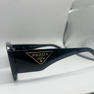 Chic Prada sunglasses with a bold rectangular shape. Dark frame adds elegance.