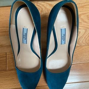 Prada Dark Teal Suede Platform Pumps Made it Italy. Worn once. In perfect condition. Platform allows easier walking.