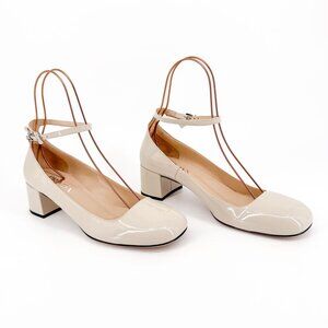 - Glossy off-white patent leather upper