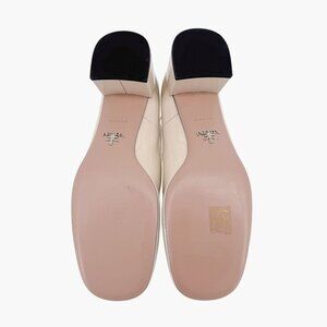 Prada Decolette Triangle Logo Mary Jane Pumps Size 40 US 10 Beige White Low Heel