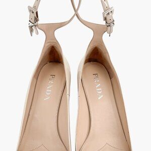 Prada Decolette Logo Mary Jane Pumps in Beige Patent Leather