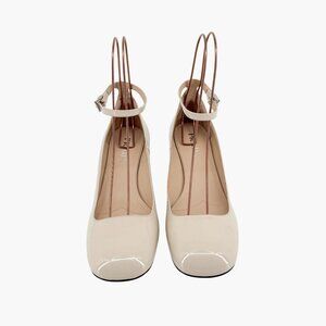 - Glossy off-white patent leather upper