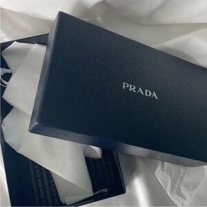 This elegant Prada wristlet features a luxurious quilted design in sleek black leather, complemented by a sophisticated chain strap.