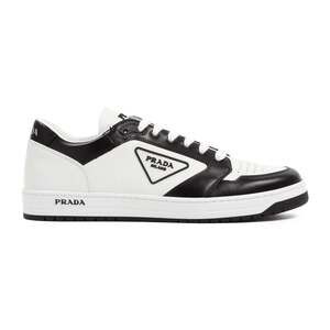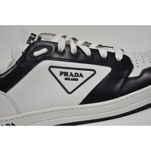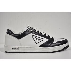 Prada District Leather White Black Triangle Logo Flat Low Top Sneaker UK 11 US 12