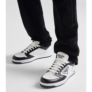 Prada District Leather White Black Triangle Logo Flat Low Sneaker UK 11 US 12
