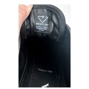 A retro soul defines these Double Wheel sneakers. A textured, oversized sole is combined with the more classic gabardine made using ECONYL® regenerated nylon. A 3D rubber triangle logo makes it instantly recognizable as Prada.