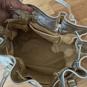 This light gold bag is in great condition, no scuffs or damage. The inside is also pristine. The authenticity cards are also included. I’ve worn it as a handle/shoulder bag
