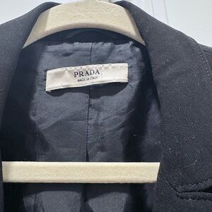 Elevate your wardrobe with this stunning authentic Prada blazer. Crafted in sleek black with a fully lined interior, this piece blends timeless tailoring with a touch of high-fashion drama.