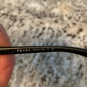 Sleek Prada glasses with a sophisticated black frame. Perfect for any occasion.