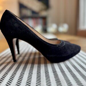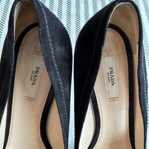 Prada Embroidered Black Suede Pointed Toe Platform Pumps, Size 39