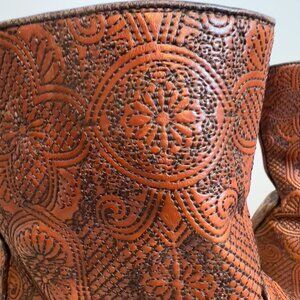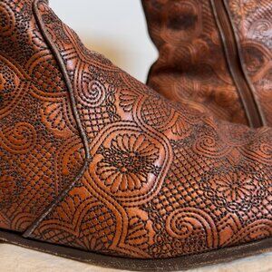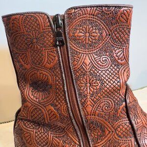 Prada Embroidered Brown Leather Boots Men's 10 Upper in very good condition, wear on soles