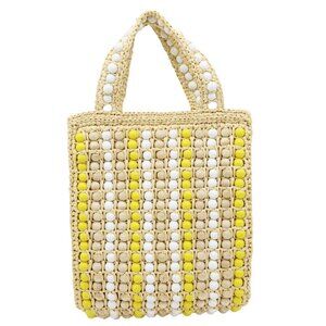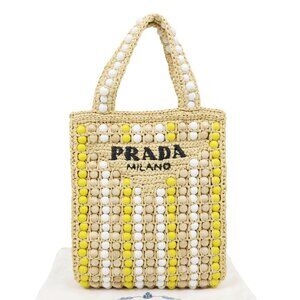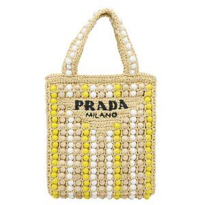 Prada Embroidered Logo Raffia Wood Bead Tote Bag Multicolor
