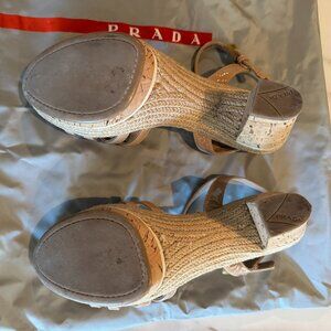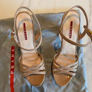 Cream leather. Heels are 4.5 inches with 1.5 inch platform. Very comfortable.