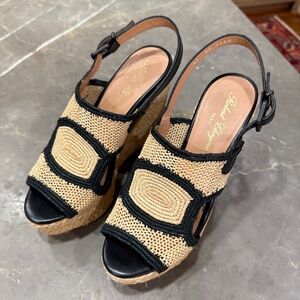 Prada Espadrille Wedge Sandals, in soft nude beige patent, Size 36.5. Buckle Strap, 95 MM. Prada Color Cipria, In excellent very gently worn condition. Original box and shoe bags included.