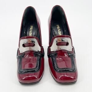 Prada Fall 2010 Burgundy Patent Leather Square Toe Loafer Pump Heel size IT 36
