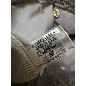 This ultra-cute Prada mini tote bag is a gift with purchase (GWP) from Prada Beauty—available only during exclusive promotions and not sold in stores. Crafted from soft dark gray faux shearling (teddy material), it features a structured mini tote shape with the white embroidered PRADA logo on the front.