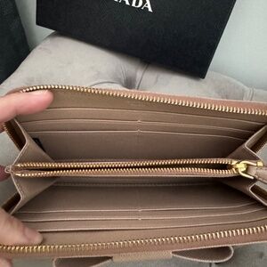 Prada Fiocco Bow Wallet Ribbon Saffiano Leather Zip Around Wallet AUTHENTIC