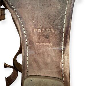 Prada Flat Gladiator Sandals, Brown Leather, Size 38.5 EU, with a Dust Bag