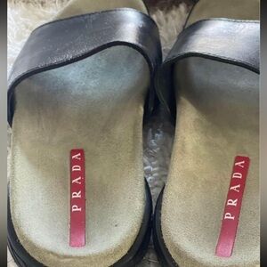 Prada Flat Leather Sandals/Slides – Size 8 Mens/ 10 Womens