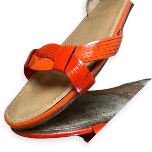 Prada Flat Sling Back Sandal, Orange Patent, Size 38.5 EU