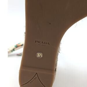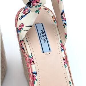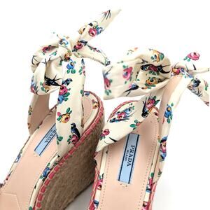 Prada Floral Platform Wedge Espadrille Sandals Self-Tie Accent Size US7.5 EU37.5
