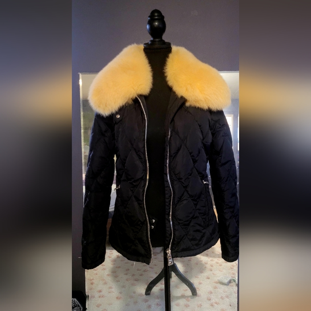 This is a gorgeous Prada jacket with a stunning, full fox collar.This jacket is Black and is in perfect condition. It comes from smoke-free home. Size Prada EU 44. Please do not inquire about discounts. I can't go lower than this. Thank you for looking!
