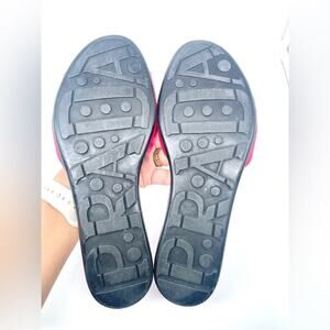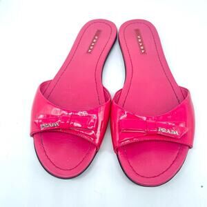 Prada Fuschia Pink Patent Leather Logo Bow Slide Sandal flat EU 39