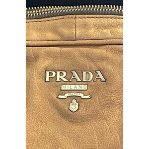 Prada Genuine Leather Shoulder/Handbag In Camel Zip Closure With Lock Luxury