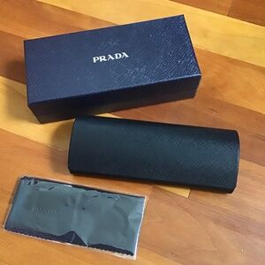 Prada set includes: Glasses case, box and cleaning cloth.