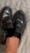 Chic Prada loafers in glossy black leather. Features signature logo detail.