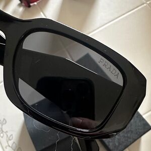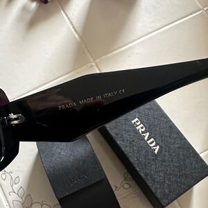 Elegant Prada sunglasses with a glossy black finish. Includes a stylish case and box.