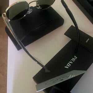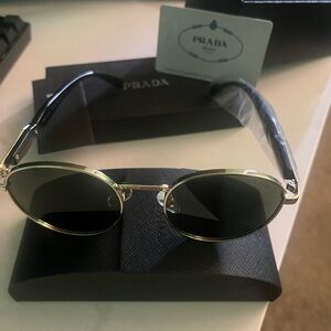 Elegant round sunglasses with a gold frame. Dark lenses for a chic look.