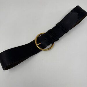 Prada Gold O Ring Black Leather Wide Waist Belt Size 36/90 Made in Italy