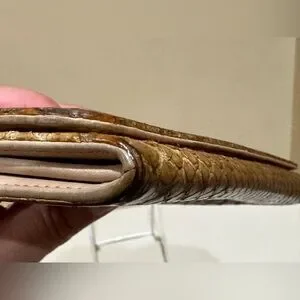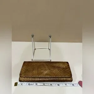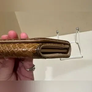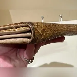 Vintage Prada Long Wallet in Python. Has some obvious use to it, some slight peeling and wear to the scales. Some discoloration. You can mainly tell the difference in color when opening the flap. Still is very clean inside and out. Snaps work well and zipper works fine. Measurements and serials are pictured as well. Thanks for looking!
